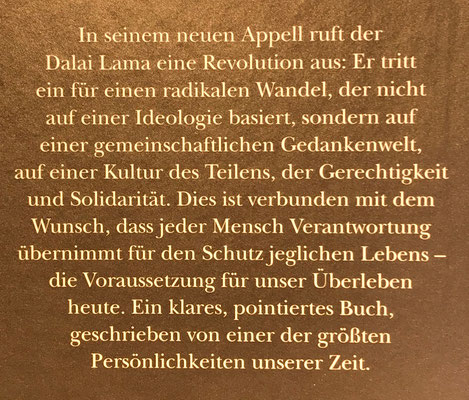 Der DALAI LAMA ist bald 84-jährig und gehört wohl weltweit zu den grössten transkonfessionellen Vorbildern in Bezug auf MENSCHLICHKEIT und SPIRITUALITÄT. In seinem jüngsten Appell richtet er sich in klaren und eindringlichen Worten vor allem an die junge Generation und an die jungen Frauen. Er benennt den Zustand der Welt, politische, wirtschaftliche, soziale und ökologische Missstände mit prägnanten Sätzen und setzt seine Hoffnung auf eine junge und wache Generation und fordert diese auf zu einer REVOLUTION DES MITGEFÜHLS.